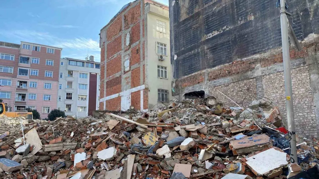 Güngören’de bina yıkımı esnasında yanındaki 2 binanın duvarında hasar oluştu. Binalarda bulunan 1 daire ve iş yerinin içi molozlarla kaplandı.