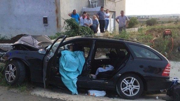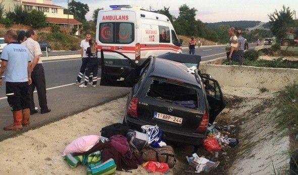 Belçika`dan Isparta`ya giden gurbetçi ailenin bulunduğu araç, Edirne`nin Keşan ilçesine bağlı Maltepe köyünde yol kenarındaki evin duvarına çarptı.