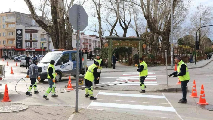 Gürsu'da yaya güvenliği için yol işaretleri yenileniyor