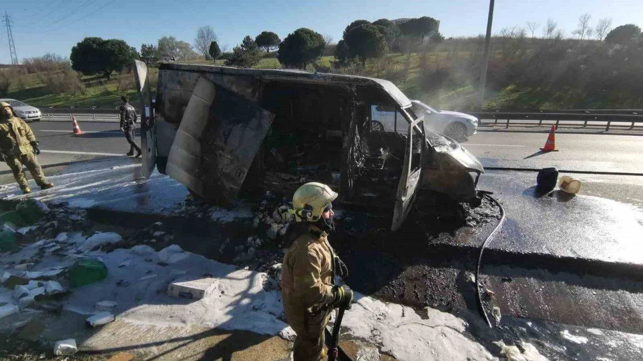 Olay, 16.00 sıralarında TEM Otoyolu Silivri istikameti Hadımköy mevkiinde meydana geldi. Edinilen bilgiye göre, M.B. kontrolündeki temizlik malzemesi yüklü 34 FU 1891 plakalı panelvan aracın motorundan bilinmeyen bir nedenle dumanlar çıkmaya başladı. Sürücünün aracı yolun sağına çekerek durmasının ardından alevler yükseldi. İhbar üzerine olay yerine polis ve itfaiye ekipleri sevk edildi. Yanan araç, itfaiye ekiplerinin müdahalesiyle söndürüldü. Yangın nedeniyle bölgede trafik yoğunluğu yaşanırken araç kullanılamaz hale geldi. Panelvanın alev topuna döndüğü o anlar cep telefonu kamerasıyla kaydedildi.