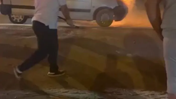 Sakarya'nın Erenler ilçesinde gece saatlerinde hafif ticari aracın motor kısmı alev aldı. O anlar cep telefonu kamerasına yansıdı.
