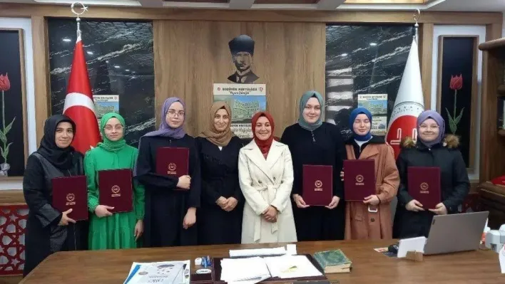 Bilecik'te gördükleri eğitimin ardından girdikleri hafızlık sınavında başarılı olan 6 kız öğrenci, belgelerini teslim aldı.