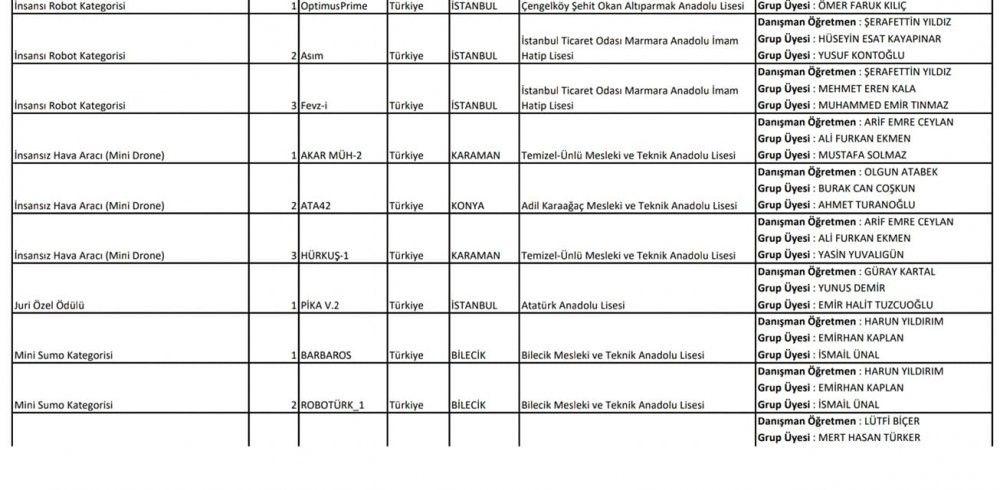 Samsun Yaşar Doğu Spor Salonu´nda düzenlenen 17 ülkeden 5 bin 999 yarışmacıya ait 3 bin 848 robotun yarıştığı 13. Uluslararası MEB Robot Yarışması´nda Silivri Atatürk Anadolu Lisesi tüm kategorilerde Jüri Özel Ödülüne layık görüldü.