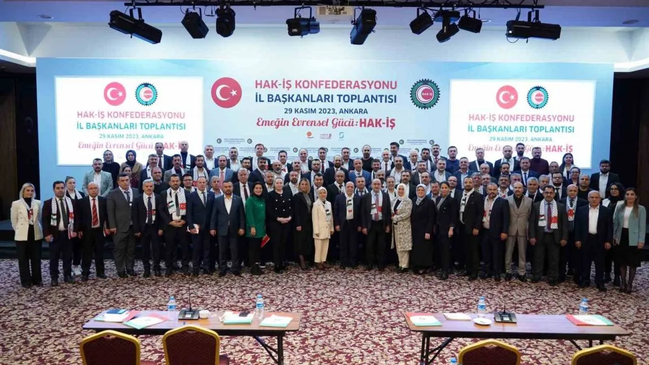 Türkiye’nin 81 ilinden gelen Hak-İş il başkanları, Ankara’da "Filistin" özel gündemi ile toplandı. Hak-İş Genel Başkanı Mahmut Arslan başkanlığında gerçekleştirilen Hak-İş İl Başkanlar Kurulu Toplantısı’nda Türkiye’deki gündem, çalışma hayatındaki gelişmeler, dünya gündeminde yer alan Filistin meselesi ile Hak-İş’in çalışmaları, sendikaların illerdeki örgütlenme faaliyetleri, il başkanlarının çalışmaları ele alındı. Toplantı sonunda bir dizi karar alındı. Alınan kararlar ise şöyle: