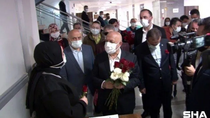 HAK-İŞ Genel Başkanı Mahmut Arslan ve sendika üyeleri, 1 Mayıs Emek ve Dayanışma Günü'nde pandemi döneminde özveriyle çalışan sağlık çalışanlarına karanfil verdi.