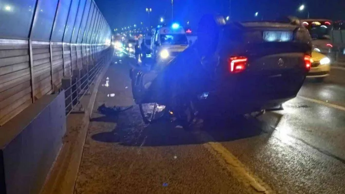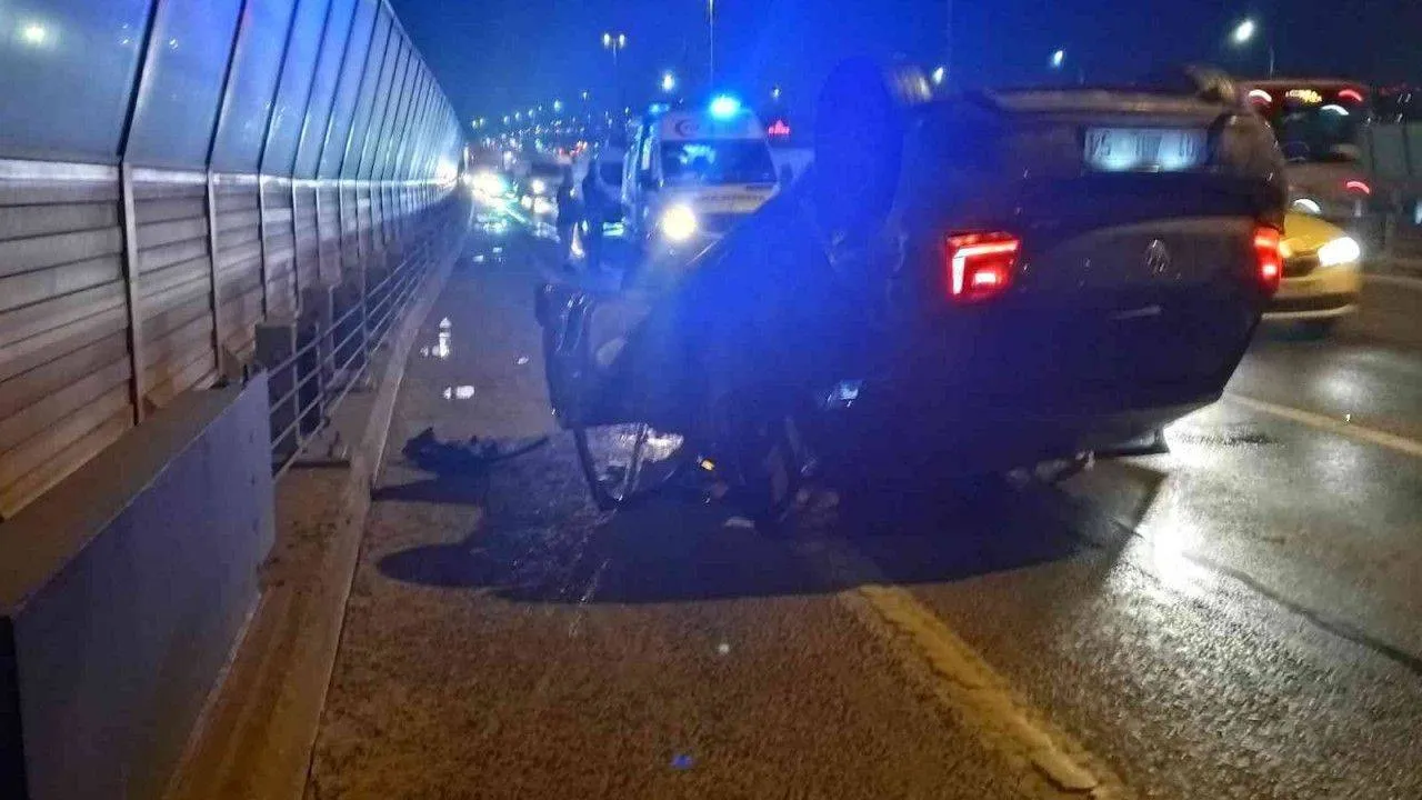 Haliç Köprüsü üzerinde ticari panelvan araç ile otomobil çarpıştı. Kazada otomobil takla atarak ters döndü.