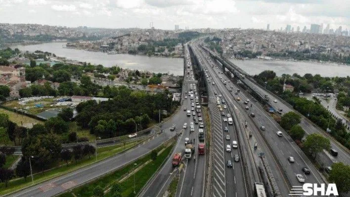 Haliç Köprüsü’nde seyir halinde olan hafriyat kamyonunda yangın çıktı. Aracın lastiğinde çıkan yangın itfaiye ekiplerince kısa sürede söndürülürken köprü üzerinde oluşan uzun araç kuyruğu havadan görüntülendi.