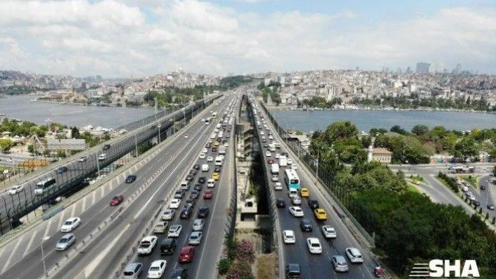 Haliç Köprüsü’nde yol bakım çalışması nedeniyle trafik yoğunluğu yaşandı. Araç yoğunluğu havadan da görüntülendi.