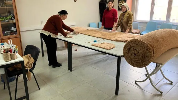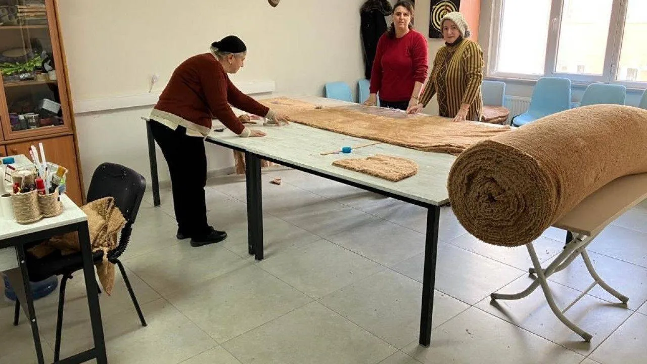 Usta öğreticiler ve gönüllü kursiyerler, kış mevsimine uygun kumaş ile üretilen giyim malzemelerini hızla tamamlayarak, depremden etkilenen bölgelere gönderecek.