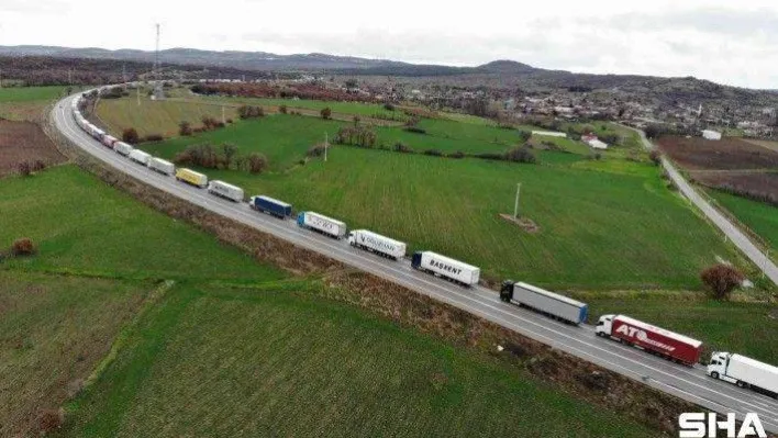 Hamzabeyli Sınır Kapısı'nda kilometrelerce tır kuyruğu
