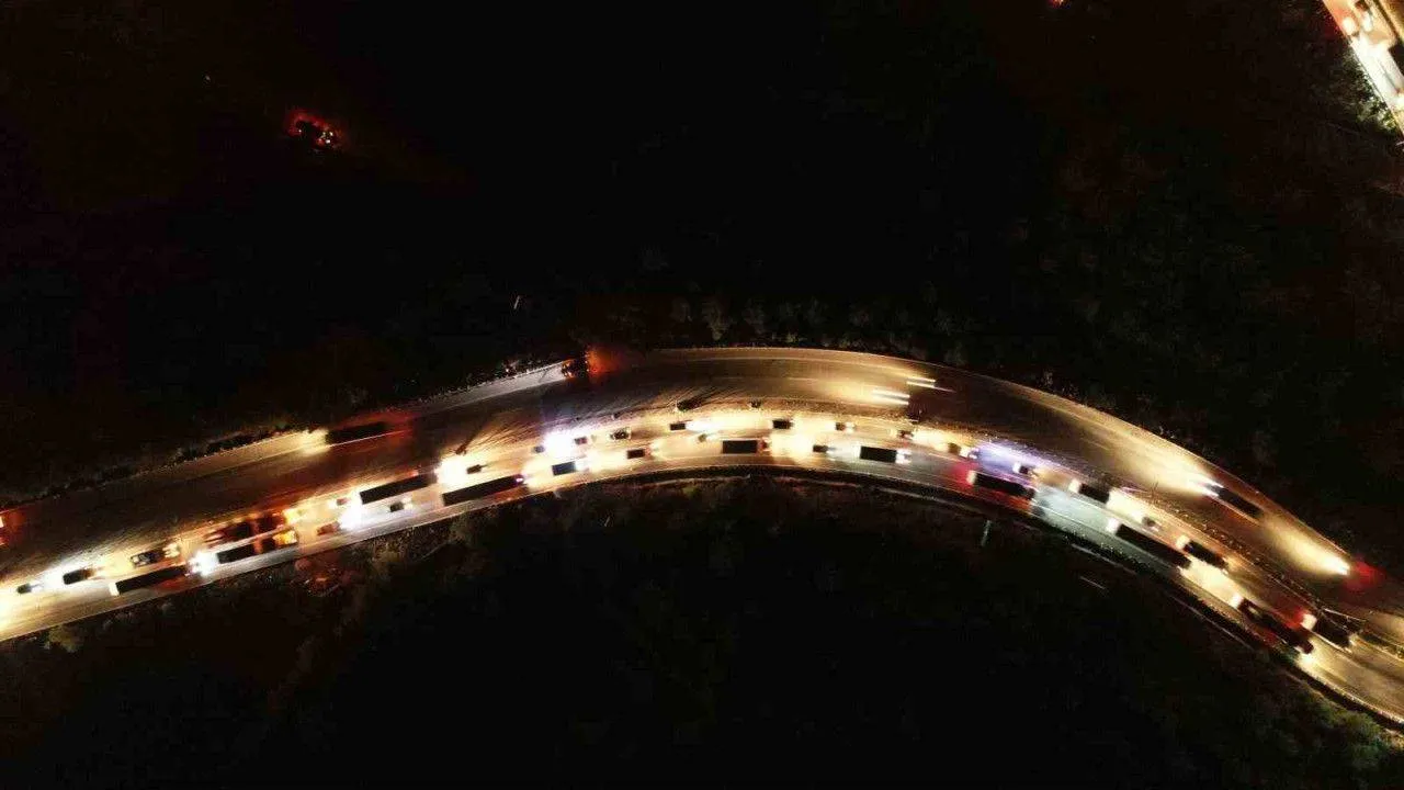 Türkiye’nin dört bir yanından Hatay’a yardıma gelen araçlar kilometrelerce uzunlukta kuyruk oluşturdu. Belen ilçesinden Hatay’ın merkezi Antakya’ya giden yardım araçlarının oluşturduğu kuyruk havadan görüntülendi.