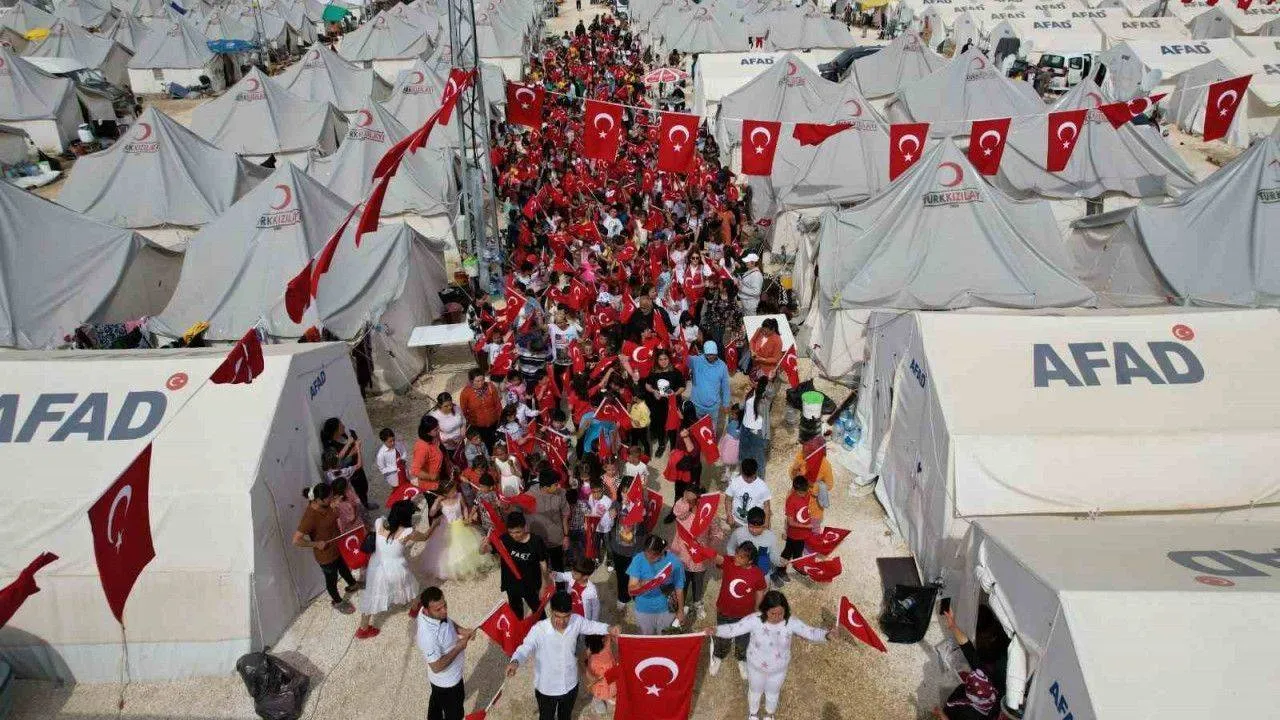 Kocaeli Büyükşehir Belediyesi’nin çadır kenti 23 Nisan’da kırmızı beyaza bürünürken, çocuklar bayramın tadını doyasıya çıkardı.