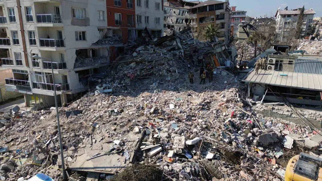 Hatay Kanatlı apartmanında arama kurtarma çalışması yapan ekipler, depremin 296. saatinde 3 kişiyi canlı çıkartmıştı. İnanılmaz kurtuluşun yaşandığı o enkaz, dron ile görüntülendi. Görüntülerde arama kurtarma ekiplerinin, enkaz üzerinde çalışmalarını yürüttüğü görüldü.