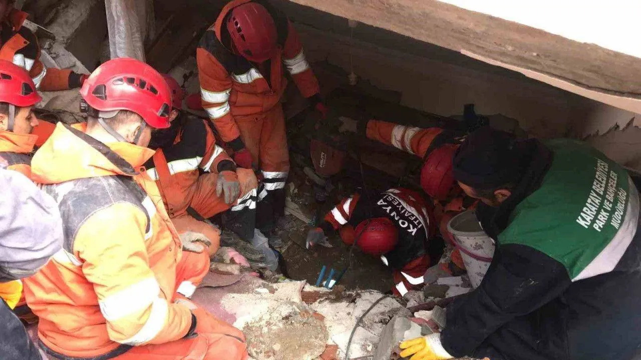 Kahramanmaraş merkezli depremlerde Hatay’ın Antakya ilçesi Ürgen Paşa Mahallesi Yüzbaşı Asım Caddesi’nde çok sayıda bina yerle bir oldu. Binaların enkazında saatlerdir kurtarılmayı bekleyen vatandaşlara, Konya Büyükşehir Belediyesi Arama Kurtarma ekipleri yardım elini uzattı. Mahallede yerle bir olan binanın enkazında kalan 24 yaşında Kerimcan Biter, ekipler tarafından bulunduğu yerden 37 saat sonra kurtarıldı.