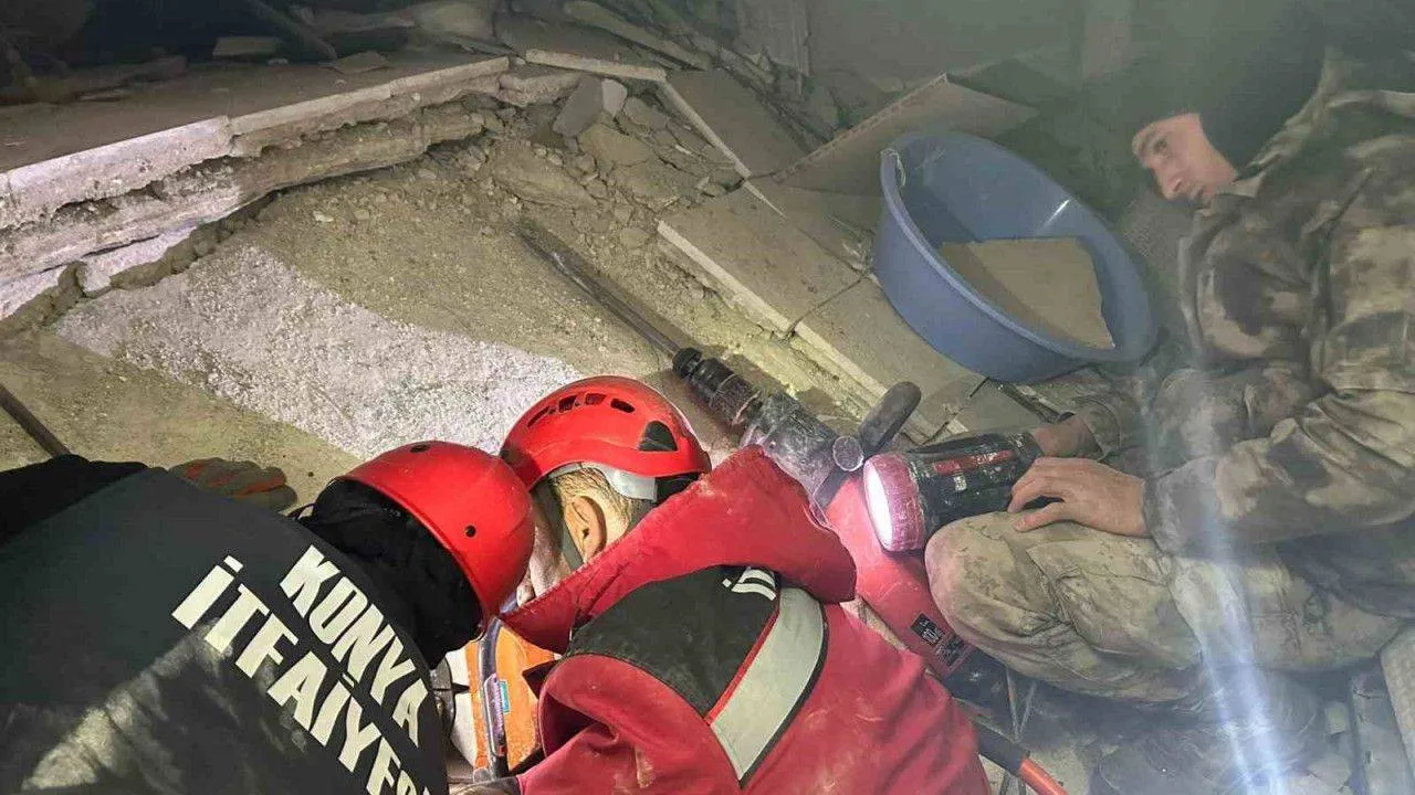 Konya Büyükşehir Belediyesi arama kurtarma ekipleri şu ana kadar 61 kişiyi enkazdan canlı çıkardı.