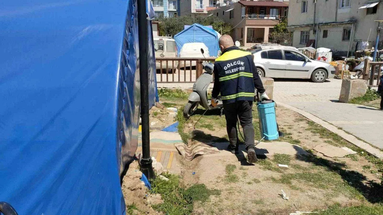 Deprem felaketinin ardından Hatay'da görev alan Gölcük Belediyesi ekipleri ilaçlamadan dezenfeksiyona, konteyner kent çalışmalarından içme suyu ihtiyaçlarına kadar birçok noktada faaliyet gösteriyor.