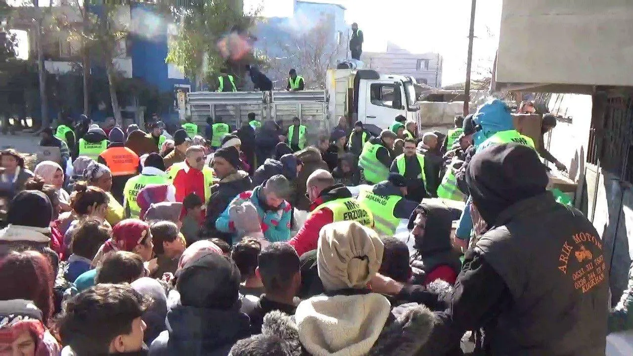 Erzurum İspir Belediyesi ve MHP İl Başkanlığınca depremzedeler için hazırlanan 20 tır dolusu gıda, su ve ısıtıcılar, Hatay Kırıkhan'da vatandaşlara dağıtıldı.