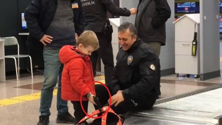 Edinilen bilgiye göre, babaannesi ve dedesini kutsal topraklara Umre yolculuğu için uğurlamaya Yenişehir Havaalanı’na gelen 6 yaşındaki Selim Köse, sırtındaki çantasını X Ray cihazına koyup geçiş yaptı. Röntgeni çekilen çantanın içerisindeki silahları farkeden polis sistemi durdurup çantayı gözetim altına aldı. Çanta açıldığında içerisindeki silahların oyuncak olduğunu anlayan görevliler küçük çocuk ile birlikte uzun süre güldüler. Silahlarını polise gösteren küçük Selim bir süre polis amcalarıyla oynayıp daha sonra yakınlarını yolcu etti.