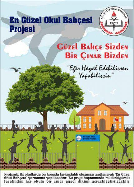 Bu bakış açısından hareketle Silivri’de ki okullarının bahçelerini doğa bilimleri ve eğitim bilimleri açısından yeniden tasarlayarak öğrenci gelişimine katkı sağlanması amacıyla “HAYALİMDEKİ OKUL BAHÇESİ” projesini uygulamaya geçirmekten mutluluk duyuyoruz. Ünlü ressam Vincent Van Gogh “ Önce resmimi hayal ederim, sonra da hayalimi resmederim.” diyor. Biz de okul bahçelerimizin gerçekleştirilmiş en güzel hayaller olarak yenileneceğini düşünüyoruz. Okullarımızın zamanı ve olanaklarını iyi değerlendirerek, ölçülebilir, başarılabilir, gerçekçi ve somut özellikler taşıyan yaklaşımlarla hedefe ulaşacaklarına inanıyoruz. Projemiz ile okullarda bu konuda farkındalık oluşması sağlanarak “En Güzel Okul Bahçesi” yarışması yapılacaktır. Bu proje kapsamında müdürlüğümüz tarafından her okula bir çınar ağacı dikimi gerçekleştirilecektir.”