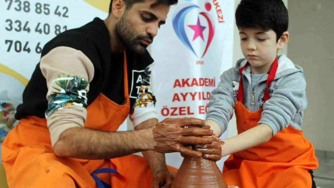 Düzenlenen çömlek yapımı etkinliğine 200 özel öğrenci ve yakınlarının katıldığı açıklandı.