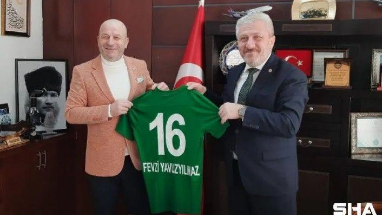 Bursaspor Başkanı Hayrettin Gülgüler, İl Sağlık Müdürü Fevzi Yavuzyılmaz’ı makamında ziyaret etti. Yapılan ziyarette İl Sağlık Müdürü Fevzi Yavuzyılmaz, yeşil-beyazlı takıma başarı dileklerini iletti. Ziyaretin sonunda Başkan Hayrettin Gülgüler, İl Sağlık Müdürü Fevzi Yavuzyılmaz’a isminin yazılı olduğu Bursaspor forması hediye etti.
