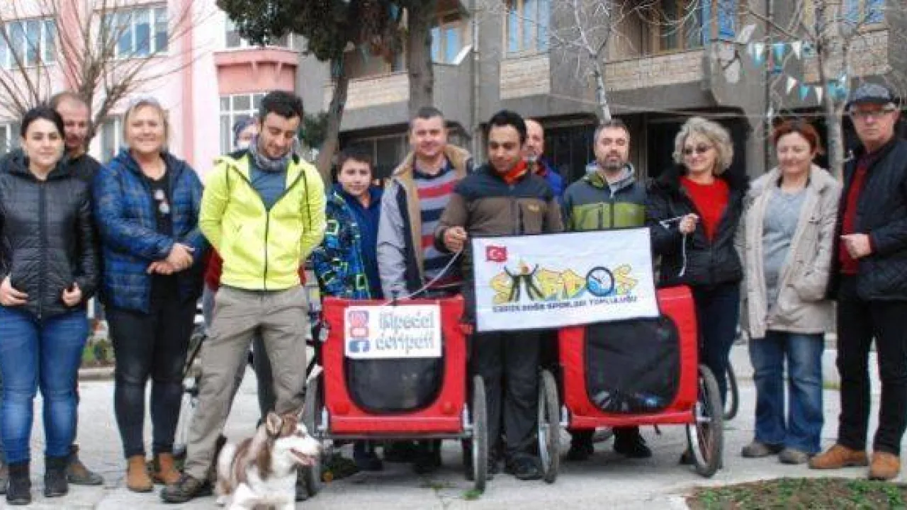 Hayvan sevgisine ve bisiklet kullanımına dikkat çekmek amacıyla 'İki pedal dört pati' sloganı ile Eska adını verdikleri köpekleriyle birlikte İstanbul'dan yola çıkan Serdar Kepenek ve Sinan Akın Edirne'nin Keşan ilçesine ulaştı.