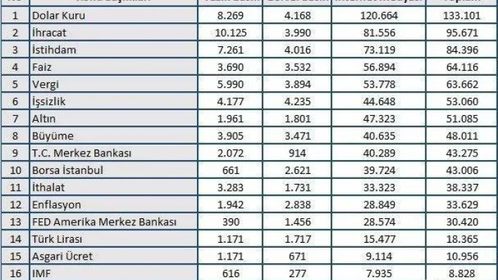 Medya Takip Merkezi (MTM), haziran ayında öne çıkan ekonomi başlıklarını belirledi. Rapora göre, ekonomi gündemini en çok dolar kuru ve ihracat meşgul ederken, memur ve memur emeklilerine yapılacak zam, gündemi meşgul eden diğer bir başlık oldu.