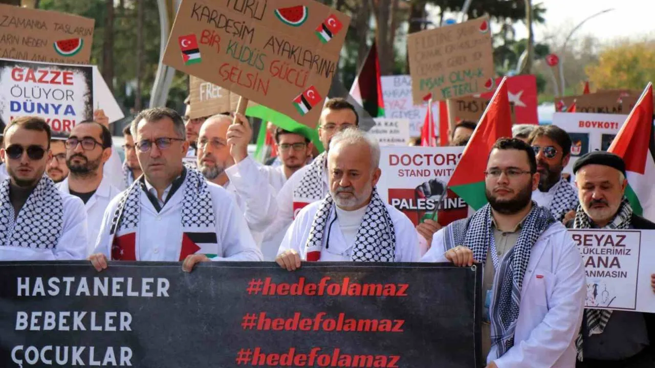 Hekimler gerçekleştirdikleri 'sessiz yürüyüş' ile İsrail'i kınadı