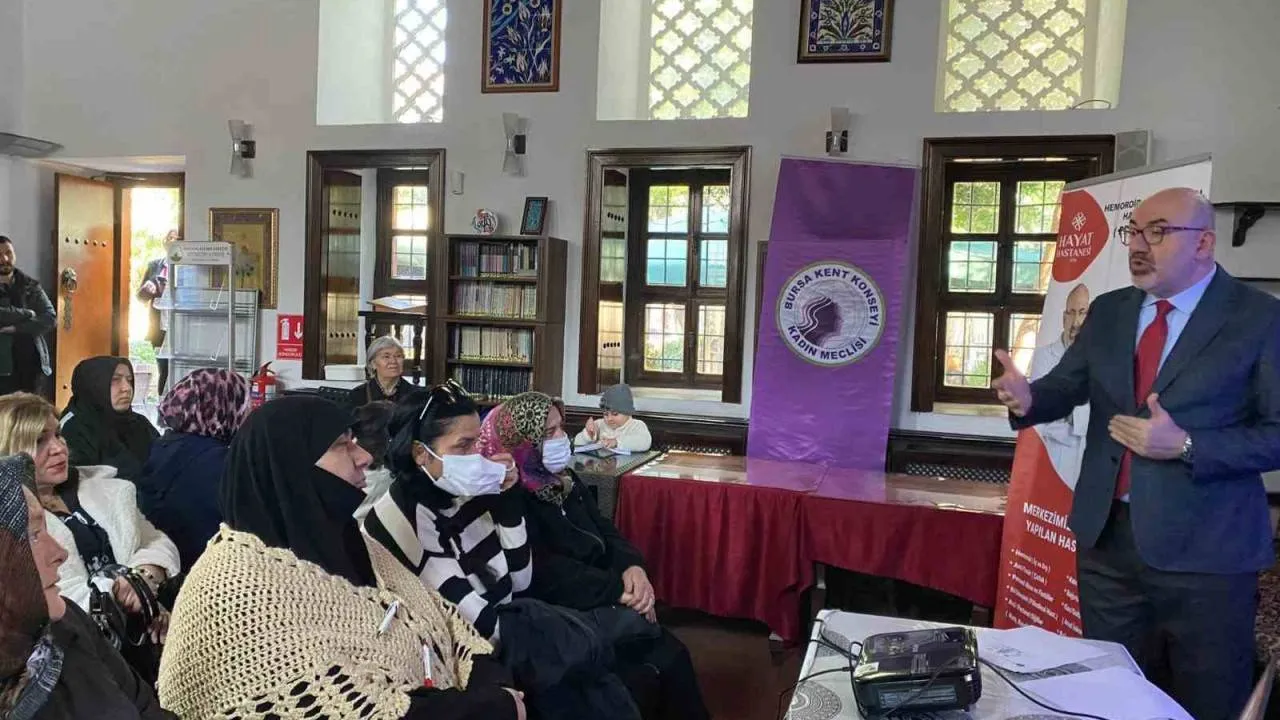 Katılımcıların sorularının cevaplandırılmasının ardından programın sonunda Bursa Kent Konseyi Kadın Meclisi Yönetimi tarafından Hayat Hastanesi Genel Cerrahi Uzmanı Op. Dr. Servet Yetgin’e teşekkür belgesi takdim edildi.