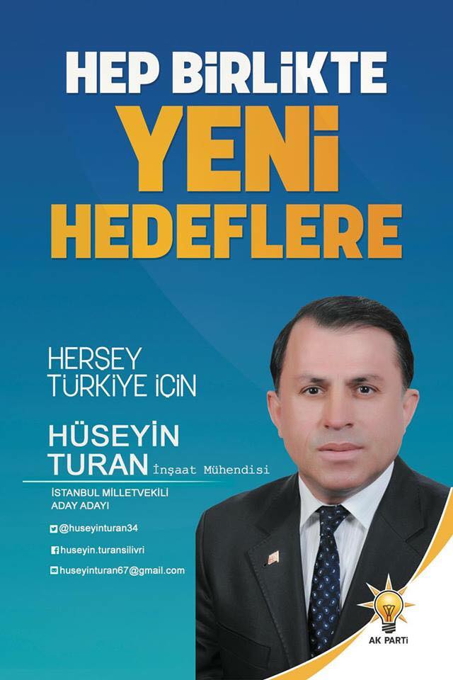 Silivri Belediyesi Eski Başkanlarından Hüseyin Turan ,24 Haziran'da yapılacak genel seçimlerde Milletvekili olmak için aday adaylığı müracaatını yaptı.