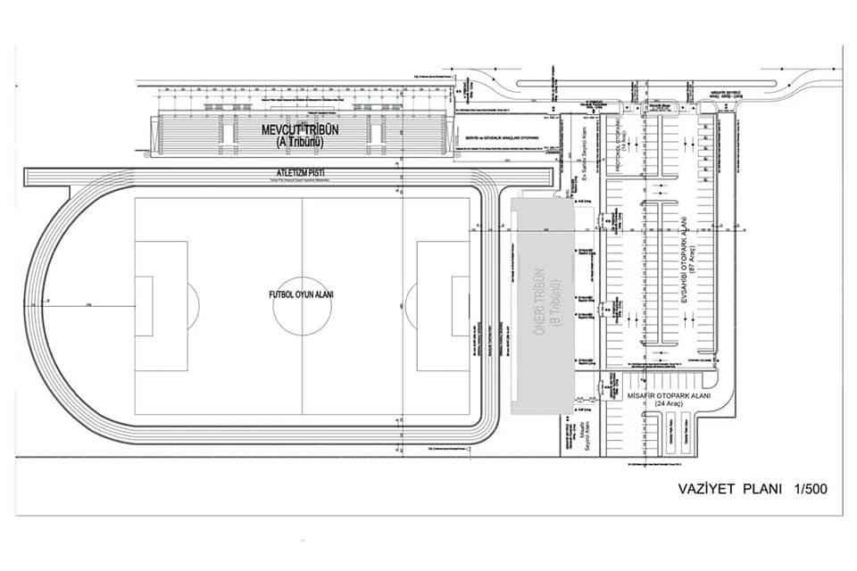 • Mevcut Tribün A Blok ve yeni yapılacak olan Tribün B Bloğunu Asma Germe Membran Sistemi ile üstü kapatılacak.