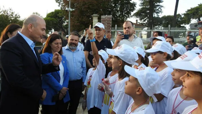 Edirne'de Eski Cami kavşağındaki yaya geçidinde gerçekleştirilen 'Yayalar Kırmızı Çizgimizdir' etkinliğine katılan İçişleri Bakanı Süleyman Soylu çocuklara yaya geçitti hakkında bilgi verdi.