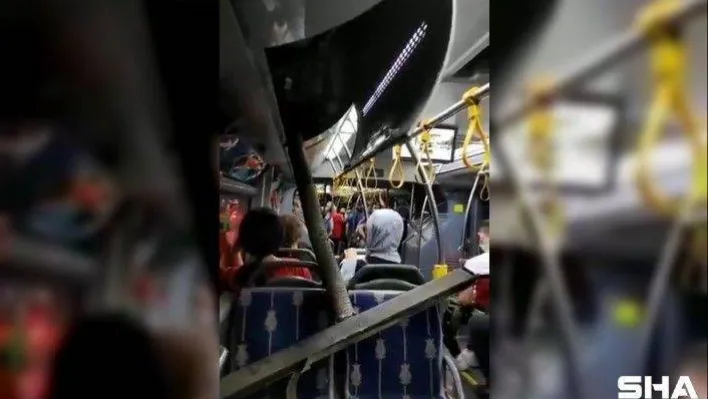 Arnavutköy-Yenibosna seferini yapan İETT otobüsünün reklam panosu otobüste bulunan yolcuların üzerine düştü.