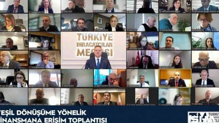 TİM Sürdürülebilirlik Eylem Planı çerçevesinde; yeşil dönüşüm sürecinde güncel durum tespiti yapmak, ekosistemin tüm paydaşlarıyla iş birliğini geliştirmek ve ihracatçılara yeşil finansman olanaklarından azami ölçüde faydalanmalarını sağlamak amacıyla ilgili bakanlık ve kamu kurumlarının, uluslararası finans kurumlarının Türkiye temsilciliklerinin, bankaların, TİM Sanayide Sürdürülebilirlik Bilim Komitesi ve İklim Komitesi üyelerinin, ilgili sektör temsilcileri ve akademisyenlerin katılımıyla çevrimiçi olarak ‘Yeşil Dönüşüme Yönelik Finansmana Erişim Toplantısı’ gerçekleştirdi.