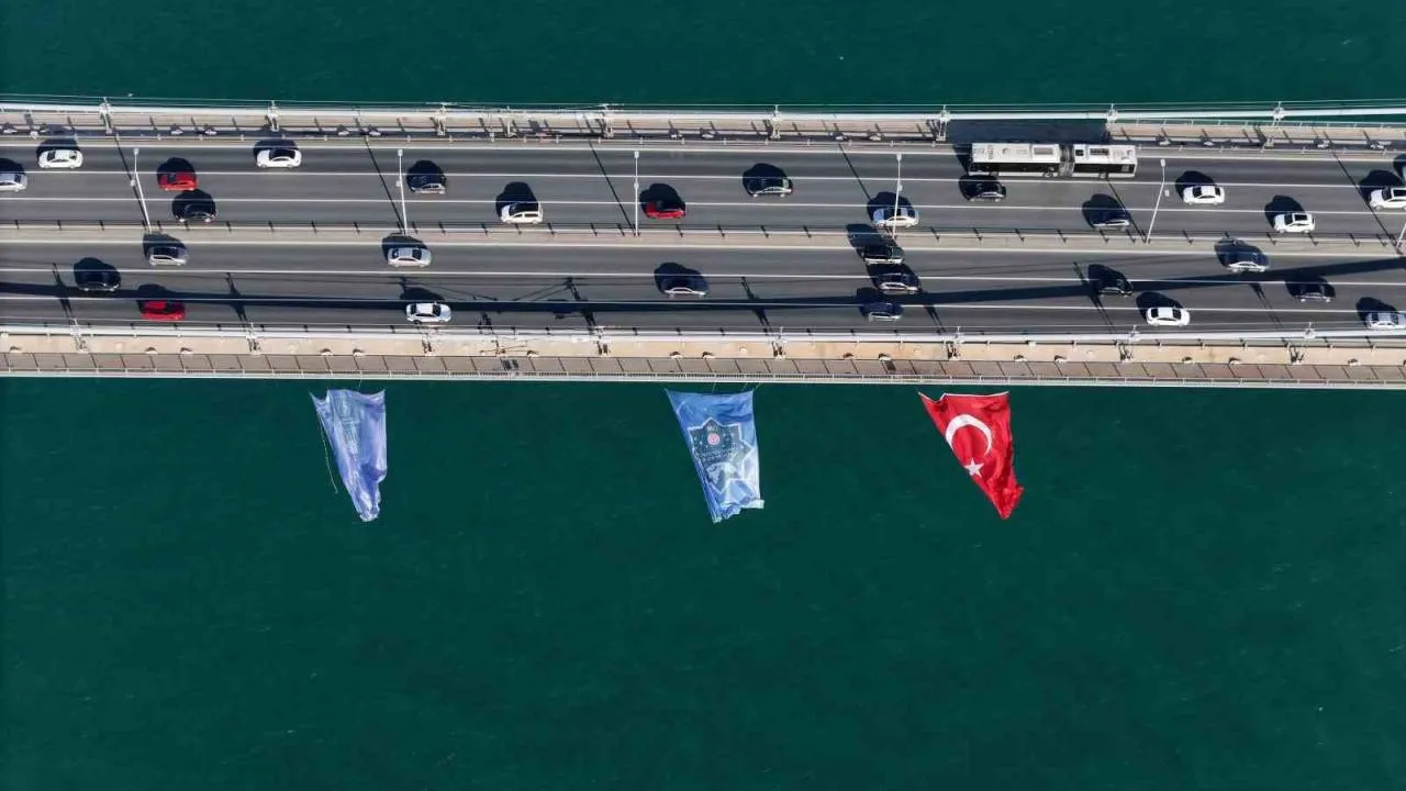 Ay yıldızlı bayrağımızı uzaya taşıyan ilk Türk astronot Alper Gezeravcı için 15 Temmuz şehitler köprüsüne Türk bayrağı ve misyonda kullandığı görev armasının flamaları asıldı.