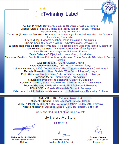 Beyciler Mukaddes Sönmez Ortaokulu öğretmenlerinden Aslıhan Dikmen'in kurucusu olduğu ''My Nature, My Story'' adlı uluslararası e –twinning projesi onaylandı.
