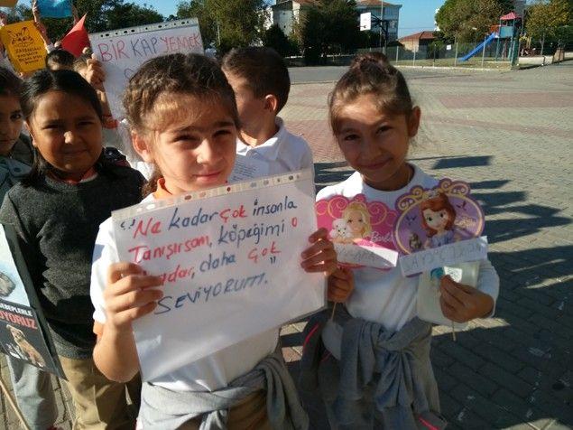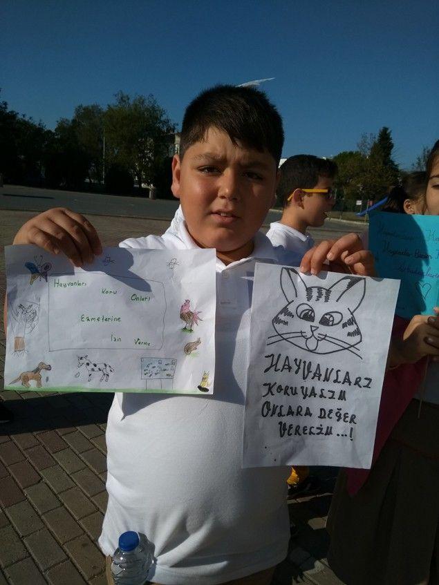 Bir diğer öğrenci Serdar Güzelbaş da “Bu dünyanın tek sahibi biz insanlar değiliz. Ama öyle davranıyoruz. Hayvanlara pek çok insan kötü davranıyor. Biz bunun sona ermesine katkıda bulunmak için yazılar hazırladık. Okulumuzun çevresindeki yollara asarak insanların okumalarını, bu konuda düşünmelerini istedik. Hayvanları besledik, mama bıraktık. Onları sevdiğimizi gösterdik. Diğer insanların da yemek bulamayan hayvanlara yiyecek ve su bırakmalarını hatırlattık. Bütün hayvanları çok seviyorum. Onların yaşam hakkının herkesçe korunmasını istiyorum” ifadelerini kullandı.