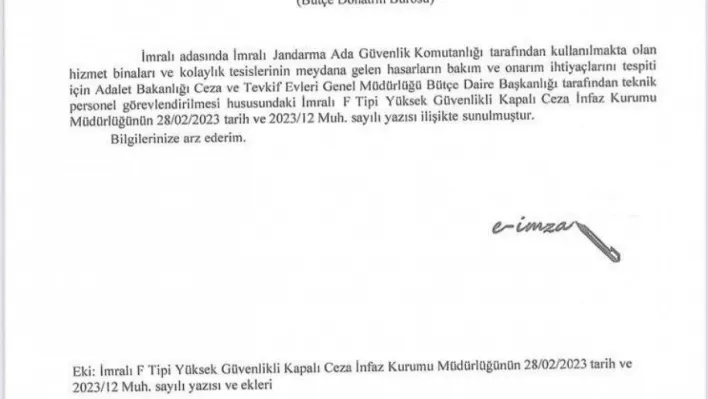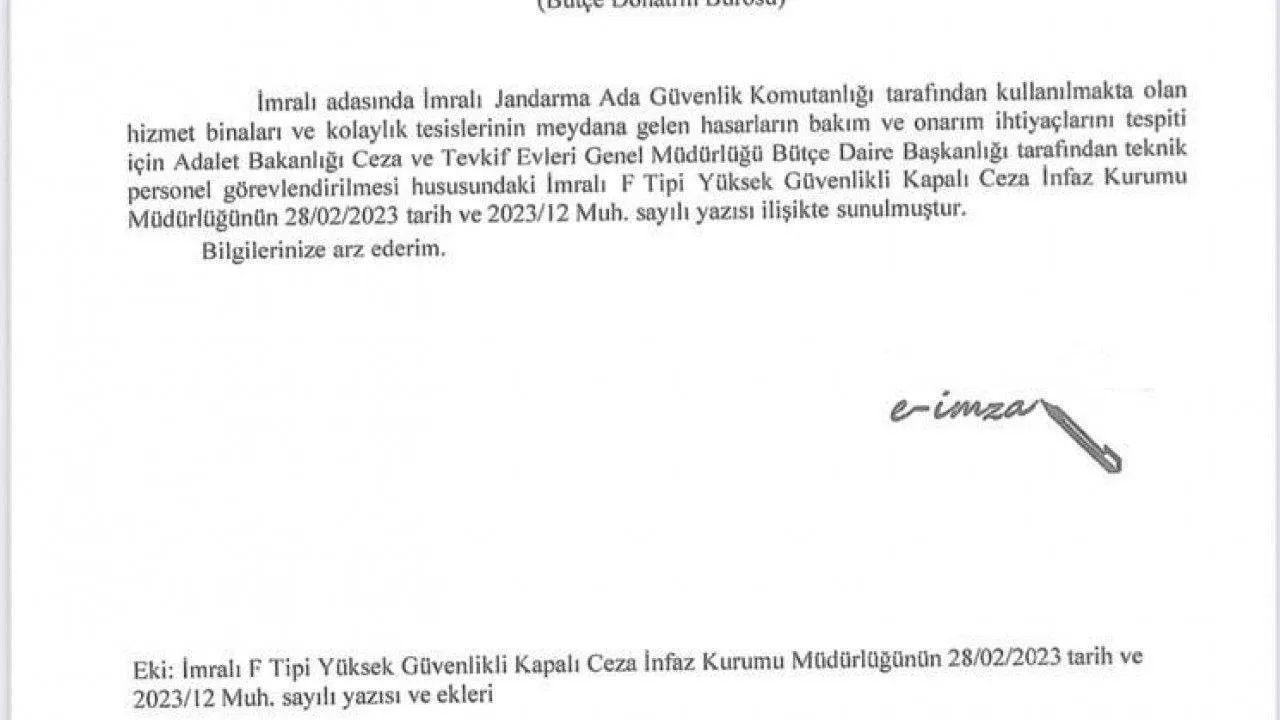 - İmralı adasında yaşanan fırtına sebebiyle oluşan hasarın onarılması üzerine ekip görevlendirilmesi talep edildi