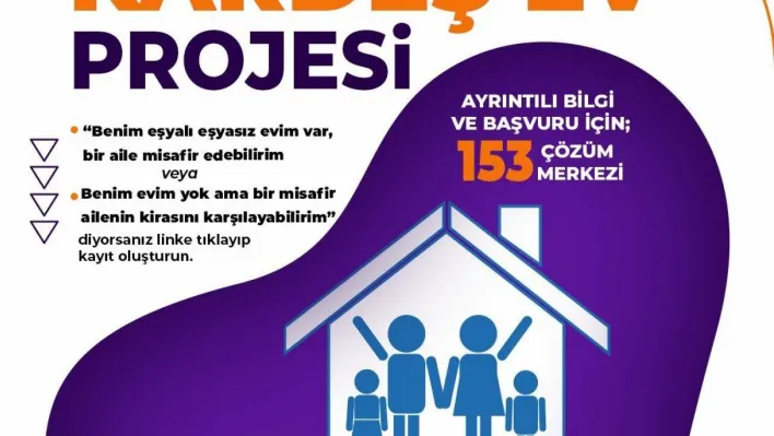 Deprem bölgesinde binlerce evin yıkılmış olması, binlercesinin de hasarlı olması nedeniyle, sokakta kalan depremzede vatandaşlar için özel bir kampanya başlatıldı. Bölgeden tahliyelerin de yapılmaya başlaması nedeniyle, depremzedelerin gönüllü vatandaşların eşyalı veya eşyasız evlerinde kış şartları bitene kadar misafir edilmesinin önemli bir çözüm olacağı ifade edildi. Bu düşünceyle başlatılan “Kardeş Ev” kampanyasında, “Benim eşyalı-eşyasız evim var ve bir aile misafir edebilirim veya benim evim yok ama bir misafir ailenin kirasını karşılayabilirim” diyenlerin https://forms.gle/oZrkjGswYnZKn6iu6 linki üzerinden veya 153 Çözüm Merkezini arayarak kayıt oluşturması istendi.