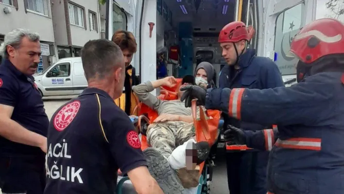 Sakarya'nın Sapanca ilçesinde inşası devam eden binada çalışan 28 yaşındaki işçi, testereyle kendini yaraladı.