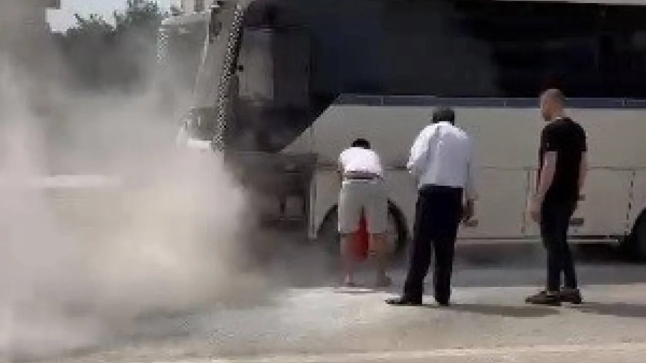 Bursa'nın Yenişehir ilçesinde içerisi işçi dolu servis midibüsünden seyir halindeyken dumanlar çıkmaya başladı. Alt kısmından alev alan servisi, vatandaşlar araçlarından çıkardıkları yangın tüpleri ile söndürdü.