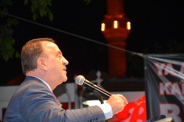 Buradan bir şey çıkaracağız. Başbakan’ımızın dediği gibi artık darbeler dönemi bitti. Darbeler döneminin geri dönülmez, kalıcı, halkın sağlam çelik gibi bir iradesi ile meydanlara çıkarak kendi iradesine, kendi egemenliğine sahip çıkabilmenin genlerinde olduğunu gösterdi. Bunlar bir günde oluşan bir şey değil. Kadim bir medeniyetin binlerce yıldır gelişmiş bir millet olmanın verdiği, devlet olmanın verdiği hafızayı o gün açığa çıkardık. Ama bundan sonra yapacağımız var. Bundan sonra Mevlana’nın dediği gibi “Seven göz kusur görmez” Bizim, bizden başka dostumuz olmadığını da gösterdi. Biz bir arada olacağız, birlikte olacağız, güçlü olacağız, diri olacağız, çalışacağız. Eğitimimizi, ekonomimizi, yerel yönetimimizi öyle taşeronlara bırakmayacak kadar güçlü bir eğitimle, dinine inanmış, ibadetini yapmış, İslamiyet’in cihan şubül yapmış milletin evlatları olarak hem milletimize hem geleneklerimizi, göreneklerimizi yaşatarak bu Allah vergisi topraklarda yerin altındaki zenginlik yok ama üstünde insan zenginliğini, rengarenk zenginliği, binlerce ilmekten oluşan halı olan Türkiye’de herkesi bu topraklar üzerinde yaşatacağız. Birbirimize olan sevgimizi, tahammül edebilmemizi, birbirimize tahammül edebilmenin engin genişliğini yayarak yapacağız. Ama şunu da unutmayacağız. Daha çok çalışmak. Akılla, bilimle… Bu memleketin büyük zenginliğini, sokaktaki kılcal damarlara kadar yayarak refahı da paylaşacağız. Nasıl kederi, nasıl sıkıntıyı, nasıl mücadeleyi paylaştıysak, bundan sonra da kimseye emanet etmeyeceğimiz devletimizin bürokrasisinin, emniyetinin, yargısının, adaletinin hepsinin yeniden deforme edilip zayıflatılmak istendiği dönemde onları güçlendireceğiz. Ekonomimizi güçlendireceğiz. Daha çok çalışacağız, daha çok inanacağız, daha çok birbirimize kenetleneceğiz.