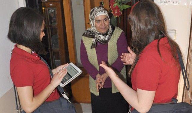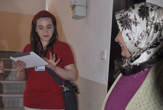' Belediye Kapınızda' projesi kapsamında kapı kapı dolaşan görevliler, vatandaşların şikâyet ve taleplerini not alırken Belediye Başkanı Özcan Işıklar imzasıyla gönderilen mektubu da takdim ediyorlar.