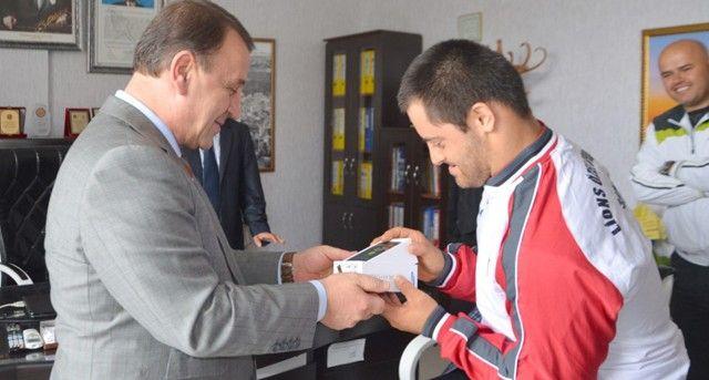 İtalya'da gerçekleşen Engelliler Dünya Şampiyonası'nda Gülle Atma dalında dünya beşincisi olan Silivrili Volkan Yavuzaslan'a, Başkan Işıklar cep telefonu hediye etti.