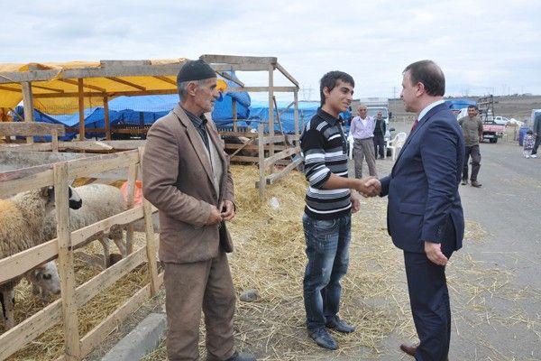 Silivri Belediye Başkanı Özcan Işıklar, bayramda kurban kesim ve satış yerlerini gezerek, kurbanlıklarını kestiren vatandaşların bayramlarını kutladı.