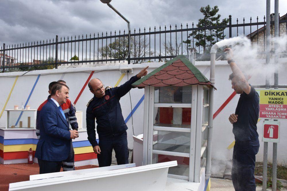 İtfaiye Amiri Budak ile birlikte istasyon içerisinde yangın anında yapılması gerekenleri gösteren tatbikat alanı ve çocuklar için farkındalık yaratacak özel oyun alanını dolaşan Işıklar, ekibin çalışmalarını tebrik etti.