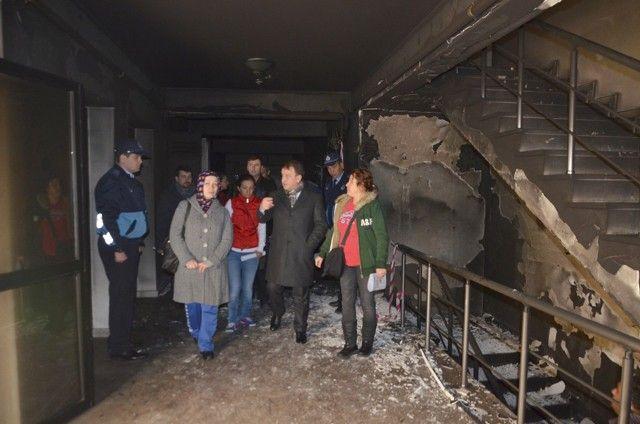Silivri Belediye Başkanı Özcan Işıklar, Selimpaşa - Ortaköy yolu üzerinde bulunan TOKİ Toplu konutlarında çıkan yangında mağdur olan site sakinlerini ziyaret etti.