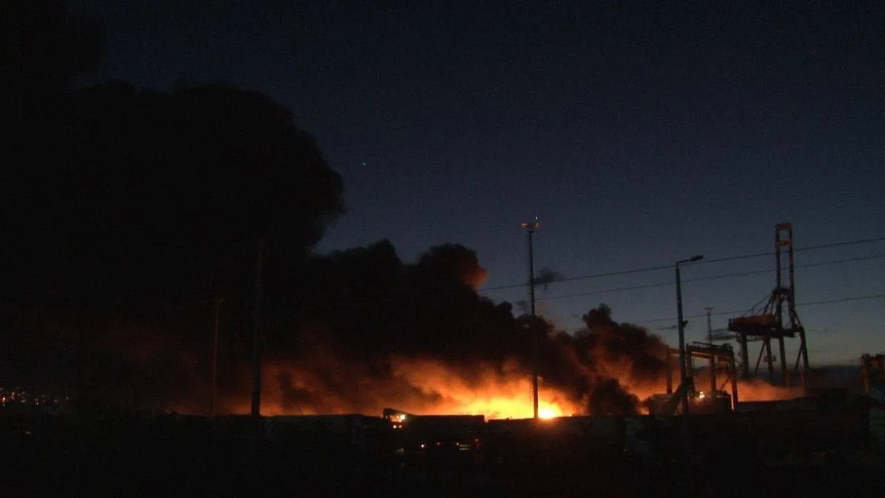 Dün Kahramanmaraş merkezli depremlerin ardından İskenderun Limanı’nda konteynerlerin devrilmesi sonucu yangın çıkmıştı. Kontrol altına alınamayan yangına yangın söndürme helikopteri ile müdahale ediliyor.