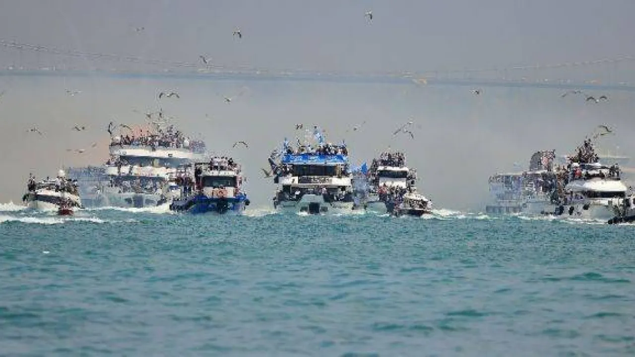 Sezonun bitimine bir hafta kala şampiyonluğunu ilan eden Beşiktaş, bugün Osmanlıspor maçı öncesi İstanbul Boğazı’nda teknelerle şov yaptı. Siyah-beyazlı takıma yüzlerce tekne eşlik ederek, boğazı adeta siyah-beyaz renklere bürüdüler.