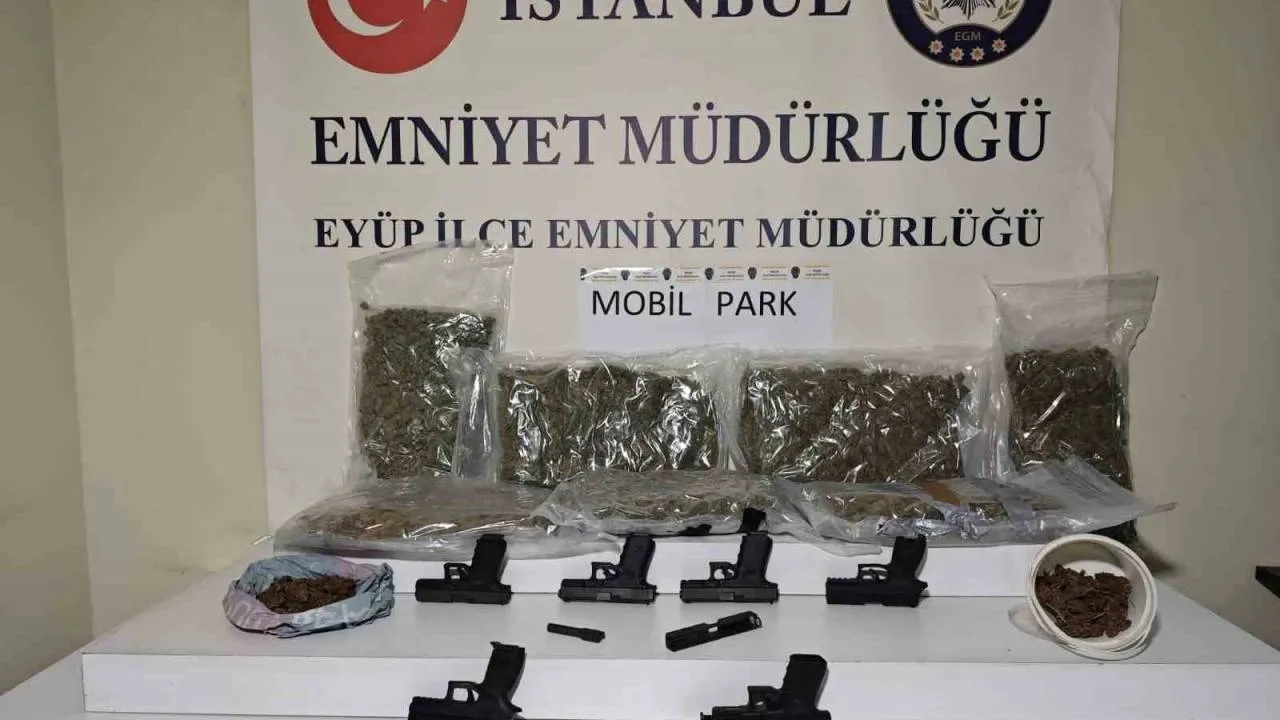 İstanbul Emniyet Müdürlüğü ekipleri 2 şüphelinin silah ve uyuşturucu madde ticareti yaptığını belirlemesi üzerine Eyüpsultan ve Fatih ilçelerinde 4 ayrı adrese eşzamanlı operasyon düzenledi. Dron destekli operasyonda çok sayıda silah ve uyuşturucu madde ele geçirilirken 2 şüpheli de yakalandı.
